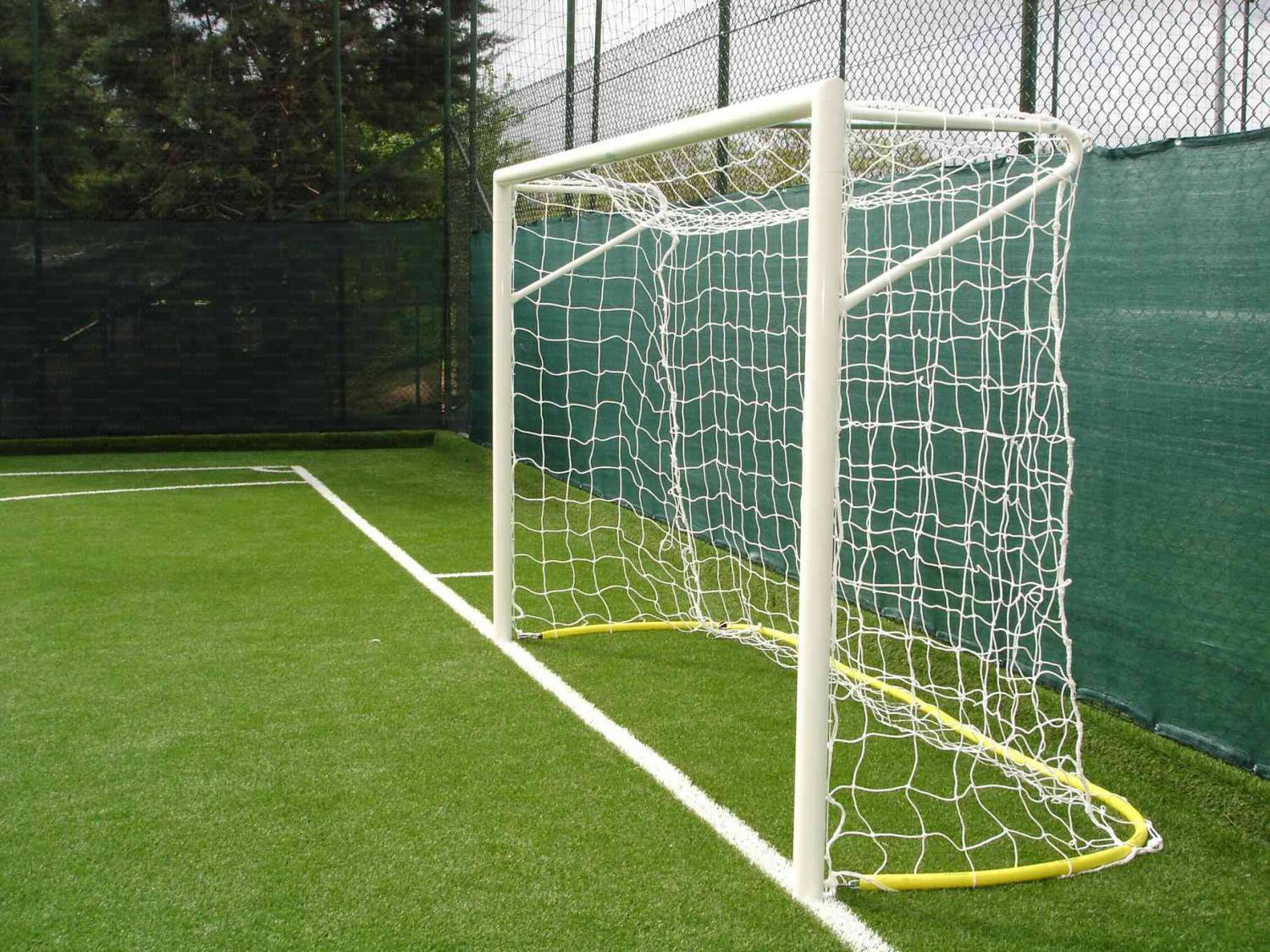 Poarta futsal otel 3x2 m, montata in manșoane, cu suporturi sudate si lant pentru plasa